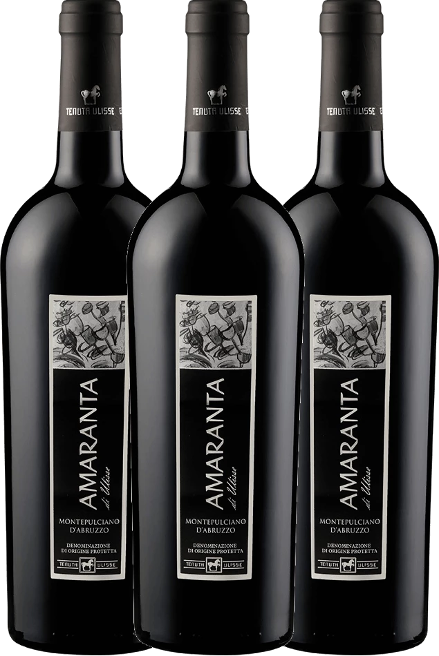 Der AMARANTA Montepulciano d’Abruzzo von Tenuta Ulisse präsentiert sich in einer rubinroten Farbe mit granatroten Reflexen im Glas. Der intensive, fruchtige und anhaltende Duft erinnert an Noten getrockneter Blumen, Gewürze, Lakritz und Maraska-Kirsche.