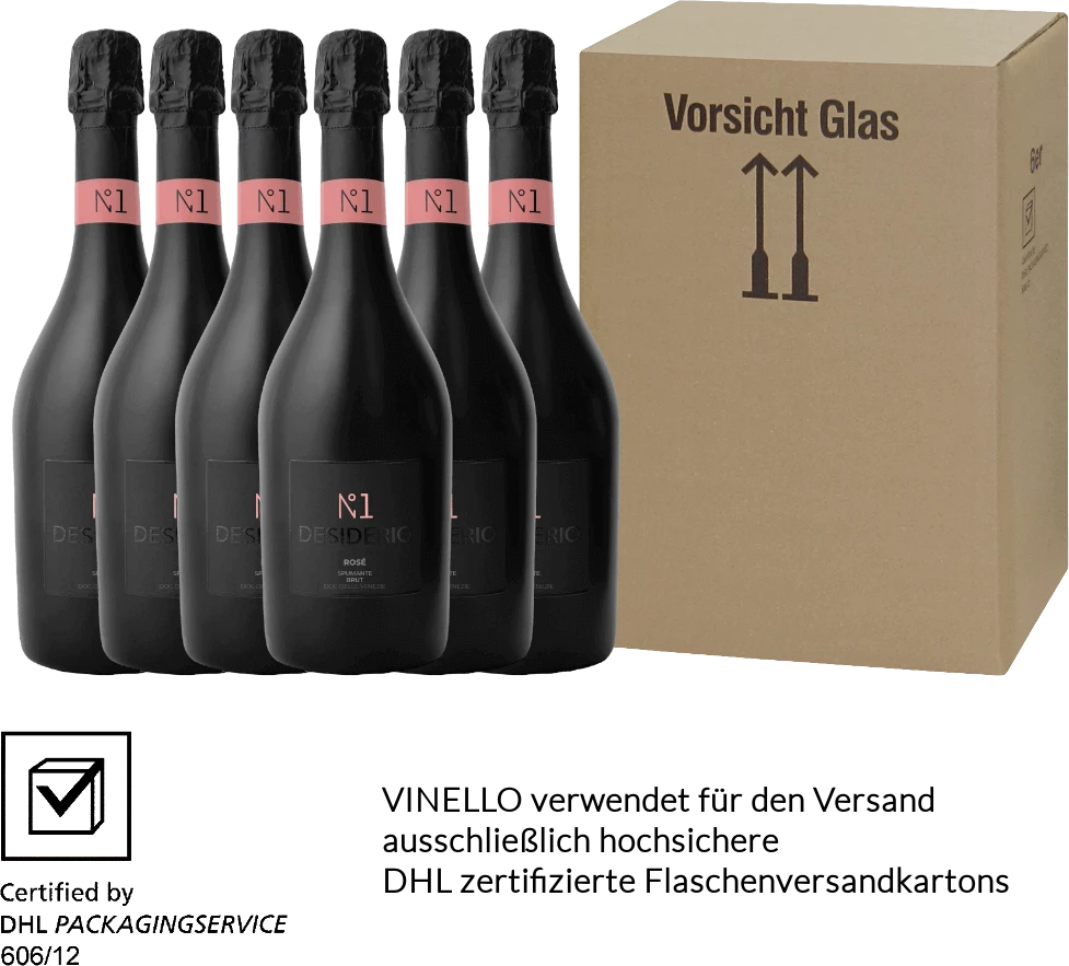 Mehr Informationen über diesen trockenen Weißwein erfahren Sie bei dem Einzelartikel des Desiderio N°1 Rosé Spumante Brut – Desiderio N°1.