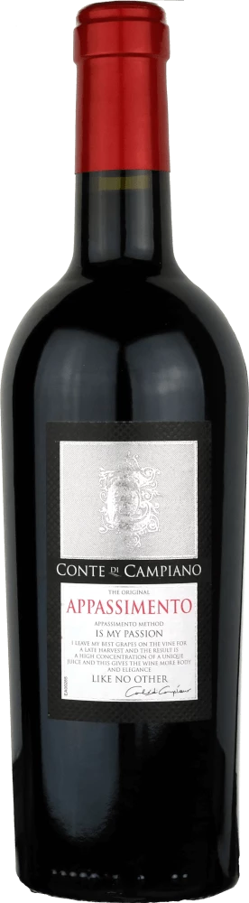 Am Gaumen startet der Conte di Campiano Appassimento mit einer exzellenten Balance aus delikaten Tanninen, feiner Fruchtsüße und einer würzig-zartbitteren Aromatik im Abgang.