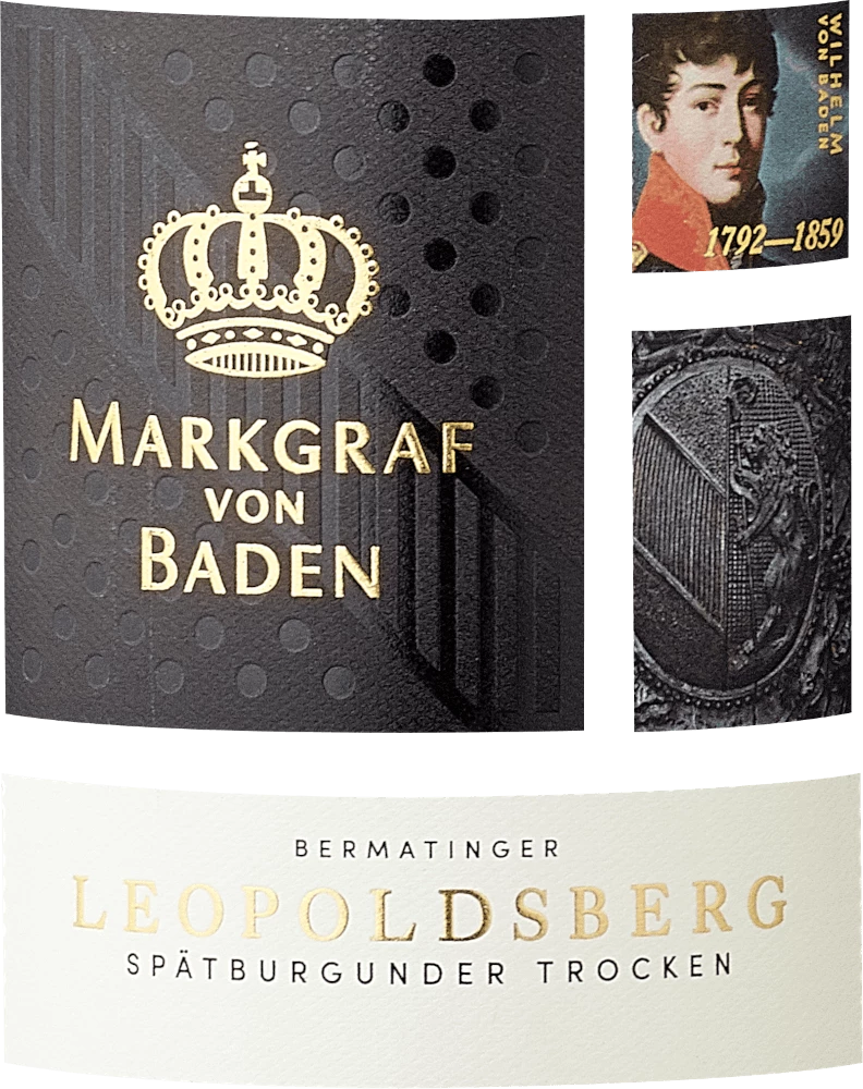 Dieser Wein legt den Schwerpunkt klar auf eine Rebsorte, und zwar auf Spätburgunder. Für diesen wunderbar eleganten reinsortigen Wein von Weingut Markgraf von Baden wurde nur bestes Traubenmaterial verwendet. Der Bermatinger Leopoldsberg Spätburgunder ist ein Alte Welt-Wein im besten Sinne des Wortes, denn dieser Deutsche Wein versprüht einen außergewöhnlichen europäischen Charme, der ganz klar den Erfolg von Weinen aus der Alten Welt unterstreicht. Die Reife des Lesegutes für diesen Wein aus Spätburgunder wird zu einem beachtlichen Anteil vom Klima der Anbauregion beeinflusst. In Baden gedeihen die Trauben in einem eher kühlen Klima, was sich unter anderem in besonders lange und gleichmäßig Trauben und einem eher moderatem Mostgewicht niederschlägt. Nach der Lese gelangen die Trauben zügig in die Kellerei. Hier werden sie sortiert und behutsam gemahlen. Es folgt die Gärung im großen Holz bei kontrollierten Temperaturen. Nach dem Ende der Gärung wird der Bermatinger Leopoldsberg Spätburgunder noch für einige Monate in großes Holzfass aus Eichenholz ausgebaut.