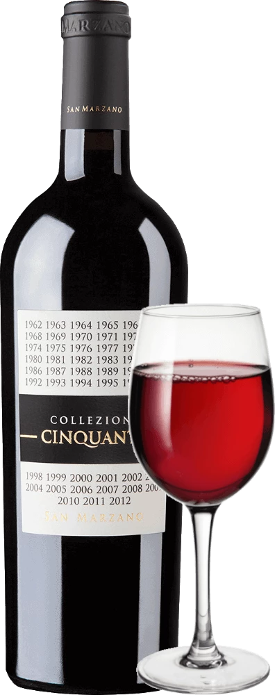 Der Collezione Cinquanta von Cantine San Marzano glänzt Rubinrot im Glas mit purpurnen Reflexen. Das Bukett ist intensiv und komplex, mit fruchtigen Duftnoten von Pflaume und Konfitüre, sowie würzigen Aromen von Vanille und Süßholz. Am Gaumen präsentiert sich dieser kraftvolle Rotwein geschmacksintensiv, von großer Struktur und unglaublich weich. Langer und anhaltender Abgang.