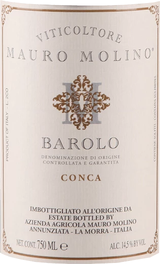 Am Gaumen startet der Conca Barolo von Mauro Molino wunderbar aromatisch, fruchtbetont und balanciert. Es gibt trocken und richtig trocken. Dieser Rotwein gehört zur zweiten Gruppe, denn er wurde mit nur 1,3 g Restzucker auf die Flasche gebracht. Auf der Zunge zeichnet sich dieser ausgeglichene Rotwein durch eine ungemein dichte, wuchtige und fleischige Textur aus. Durch seine präsente Fruchtsäure präsentiert sich der Conca Barolo am Gaumen beeindruckend frisch und lebendig. Das Finale dieses sehr reifungsfähigen Rotwein aus der Weinbauregion Piemont, genauer gesagt aus Barolo DOCG, begeistert schließlich mit außergewöhnlichem Nachhall. Der Abgang wird zudem von mineralischen Facetten der von Kalkstein und Lehm dominierten Böden begleitet.