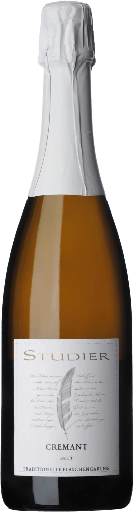 Im Glas zeigt der vegan erzeugte Cremant Brut aus dem Hause Weingut Studier eine leuchtend goldgelbe Farbe. Die Perlung dieses Crémants glänzt im Glas wunderbar lang anhaltend und fein. Nach dem ersten Schwenken, kann man bei diesem Schaumwein eine perfekte Balance wahrnehmen, denn er zeichnet sich an den Glaswänden weder wässrig noch sirup- oder likörartig ab. Mit etwas Zeit im Glas zeigt dieser Schaumwein aus Deutschland herrlich ausdrucksstarke Aromen nach Banane, abgerundet von , die der Fassausbau beisteuert.