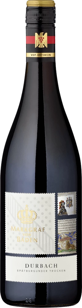 Dieser Wein legt den Schwerpunkt klar auf eine Rebsorte, und zwar auf Spätburgunder. Für diesen außergewöhnlich eleganten sortenreinen Wein von Weingut Markgraf von Baden wurde nur erstklassiges Traubenmaterial eingebracht. Nach der Weinlese gelangen die Trauben zügig ins Presshaus. Hier werden sie sortiert und behutsam aufgebrochen. Es folgt die Gärung im Edelstahltank und großen Holz bei kontrollierten Temperaturen. Nach dem Abschluss der Gärung kann sich der Durbach Spätburgunder für einige Monate auf der Feinhefe weiter harmonisieren..