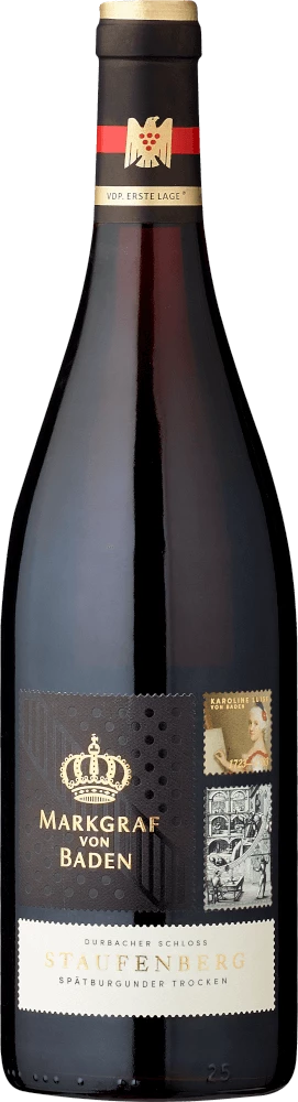Grundlage für den balancierten Durbacher Schloss Staufenberg Spätburgunder aus Baden sind Trauben aus der Rebsorte Spätburgunder. Die Trauben wachsen unter optimalen Bedingungen in Baden. Die Reben graben hier ihre Wurzeln tief in Böden aus Granit und Verwitterungsgestein. Die Trauben dieses Spitzenweins von Weingut Markgraf von Baden wachsen zudem nicht etwa im Flachland, sondern graben in Steillagen ihre Wurzeln in den Untergrund. Der Steillagenanbau stellt sicher, dass auch in weniger sonnenverwöhnten Weinbauregionen mit kürzeren Vegetationsperioden die Rebstöcke ein Maximum an Sonne einfangen. Natürlich wird der Durbacher Schloss Staufenberg Spätburgunder auch von Klima und Weinbaustil Durbach bestimmt. Dieser Deutsche Wein kann im besten Sinne des Wortes als Wein der Alten Welt bezeichnet werden, der sich außergewöhnlich eindrucksvoll präsentiert. Die Reifung des Lesegutes für diesen Wein aus Spätburgunder wird zu einem nicht von der Hand zu weisenden Anteil vom Klima der Anbauregion beeinflusst. In Baden gedeihen die Trauben in einem eher kühlen Klima, was sich unter anderem in besonders lange und gleichmäßig Trauben und einem eher moderatem Mostgewicht niederschlägt. Die Trauben für diesen Rotwein aus Deutschland werden, nachdem die optimale Reife sichergestellt wurde, ausschließlich von Hand . Nach der Lese gelangen die Trauben zügig in die Kellerei. Hier werden sie sortiert und behutsam aufgebrochen. Es folgt die Gärung im großen Holz bei kontrollierten Temperaturen. Der Gärung schließt sich eine Reifung für einige Monate in großem Holzfass aus Eichenholz an.