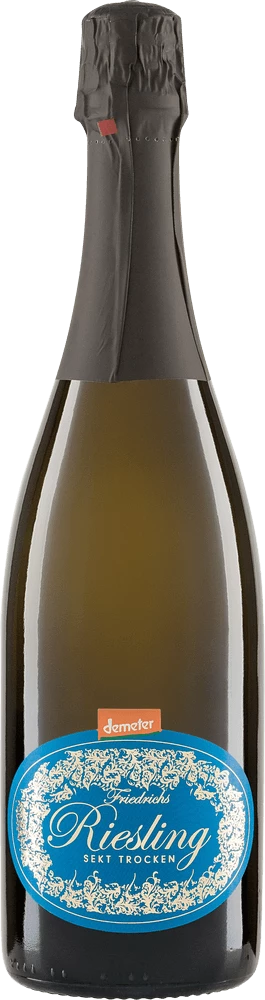 Grundlage für den eleganten Friedrich Rieslingsekt Trocken Demeter aus Deutschland sind Trauben aus der Rebsorte Riesling. Nach der Handlese werden die Weintrauben umgehend ins Presshaus gebracht. Hier werden sie selektiert und behutsam gepresst. Nun folgt die Gärung der Grundweine. Nach der Zusammenstellung der Cuvée folgt der weitere Ausbau auf Basis der klassischen Flaschengärung. Im Anschluss reift der Peter Riegel Weinimport Friedrich Rieslingsekt Trocken Demeter für einige Monate in der Flasche und wird schließlich degorgiert.