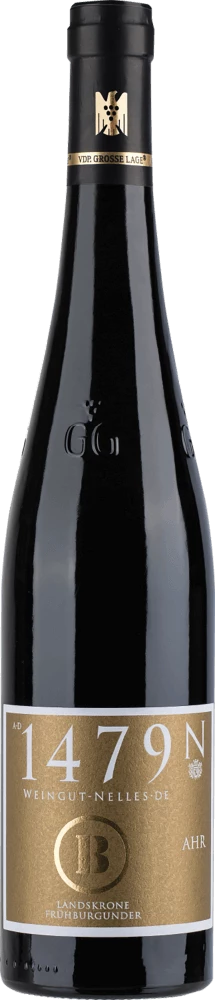 Grundlage für den balancierten Frühburgunder Landskrone GG aus die Ahr sind Trauben aus der Rebsorte Frühburgunder. An der Ahr wachsen die Reben, die die Trauben für diesen Wein hervorbringen auf Böden aus Sandstein. Der Frühburgunder Landskrone GG ist ein Alte Welt-Wein im besten Sinne des Wortes, denn dieser Deutsche Wein versprüht einen außergewöhnlichen europäischen Charme, der ganz klar den Erfolg von Weinen aus der Alten Welt unterstreicht. Nach der Weinlese gelangen die Weintrauben auf schnellstem Wege in die Kellerei. Hier werden sie sortiert und behutsam gemahlen. Es folgt die Gärung im Edelstahltank bei kontrollierten Temperaturen. Der Vergärung schließt sich eine Reifung für einige Monate auf der Feinhefe an, bevor der Wein schließlich auf Flaschen gezogen wird.