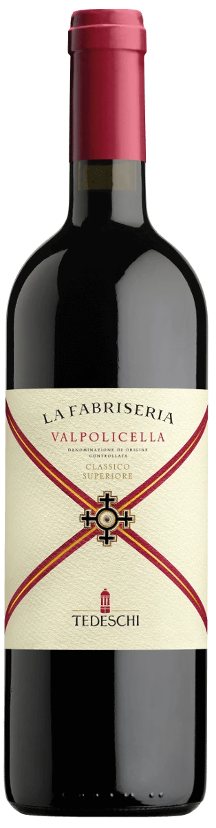 Der La Fabriseria Valpolicella Classico Superiore DOC von Weingut Tedeschi ist ein Cru vom gleichnamigen Weinberg im Kerngebiet des Valpolicella Classico. Im Glas präsentiert sich dieser Valpolicella Classico intensiv Rubinrot, klar und durchscheinend. Das Bukett weist Duftnoten von roter Johannisbeere, Sauerkirsche, Kirschen und Pflaumen, die dem Wein Frische verleihen,und mischen sich mit mineralischen, weinigen und Vanillenoten. Der La Fabriseria zeigt eine reichhaltige und ausgewogene Struktur, konzentrierte und kraftvolle Tannine im Zusammenspiel mit einer lebhaften Säure und Alkoholgehalt weisen auf ein langes Reifepotential hin. Im Nachhall bestätigen sich die Aromen aus dem Bukett. Ein nachhaltiger, langer und sehr eleganter Rotwein aus Venetien.