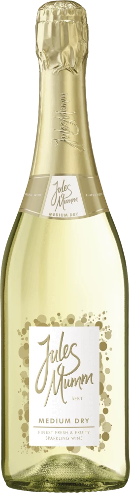 Am Gaumen präsentiert sich die Textur dieses leichtfüßigen Sektes wunderbar leicht. Das Finale dieses Schaumwein aus der Weinbauregion das Rheingau überzeugt schließlich mit gutem Nachhall. Nach der Lese werden die Weintrauben umgehend ins Presshaus gebracht. Hier werden sie sortiert und behutsam gepresst. Es folgt die Gärung der Grundweine. Nach der Komposition des finalen Sektes folgt der weitere Ausbau auf Basis der Methode Charmat. Im Anschluss reift der Jules Mumm Medium Dry für einige Monate in der Flasche und wird schließlich degorgiert.