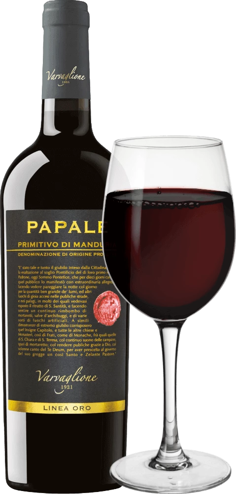Ins Leben gerufen wurde die Papale-Weinserie anlässlich 90jährigen Bestehens von Varvaglione, das im Jahre 2012 gefeiert wurde. Der „päpstliche“ Wein erhielt seinen Namen übrigens vom Weinberg, auf dem die Trauben für den Papale Primitivo wachsen, denn der gehörte einst der Familie von Papst Benedikt XIII.