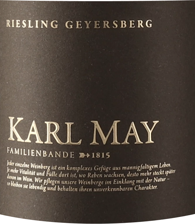 Der elegante Riesling Bechtheim Geyersberg Bio von Karl May schimmert mit leuchtendem Hellgelb im Glas. Schwenkt man das Glas, dann kann man bei diesem Weißwein eine perfekte Balance wahrnehmen, denn er zeichnet sich an den Glaswänden weder wässrig noch sirup- oder likörartig ab. Der Nase zeigt dieser Karl May Weißwein allerlei Nektarinen, Orangeblüten, Quitten, Kirschblüten und Aprikosen. Als wäre das nicht bereits eindrucksvoll genug, gesellen sich durch den Ausbau im Edelstahl weitere Aromen wie schwarzer Tee, Waldboden und sonnenwarmes Gestein hinzu.