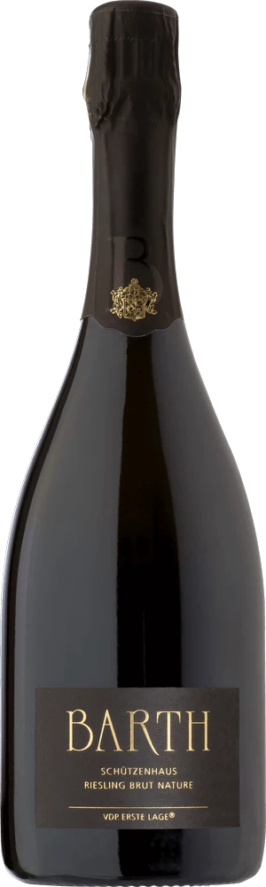Mit dem Wein- & Sektgut Barth Schützenhaus Riesling Sekt Brut nature Erste Lage Bio kommt ein erstklassiger veganer Sekt ins geschwenkte Glas. Hierin offenbart er eine wunderbar brillante, hellgelbe Farbe. Die Perlung dieses Sektes leuchtet im Glas ungemein fein, elegant und lang anhaltend. Dieser Wein zeigt im Kern zudem Reflexe. Beim Schwenken des Glases zeichnet sich dieser Schaumwein durch eine ungemeine Brillanz aus, die ihn lebendig im Glas tanzen lässt. Dieser sortenreine deutsche Wein präsentiert im Glas herrlich komplex Noten von Birnen, Äpfeln, Nashi-Birne und Quitten. Hinzu gesellen sich Anklänge von Vollnuss-Schokolade, Brioche und Walnuss.