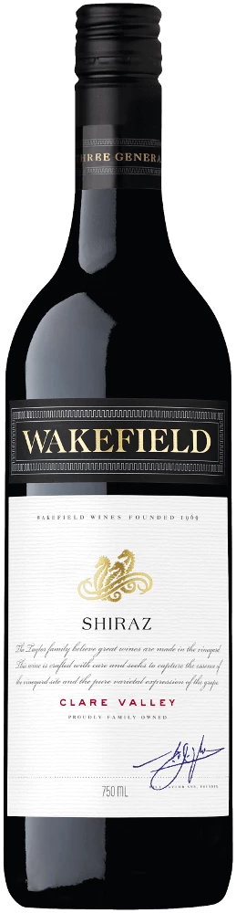Der Shiraz Estate von Wakefield leuchtet dunkelrot im Glas mit rubinroten Nuancen. An der Nase duftet dieser Rotwein angenehm nach Aromen von Pflaumen, schwarzer Johannisbeere und dunklen Kirschen, zusammen mit sanften Anklängen von Mokka und würzigen Noten vom Ausbau im Eichenholz.