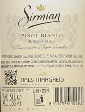 Prämierungen für den Sirmian Pinot Bianco von Nals Margreid