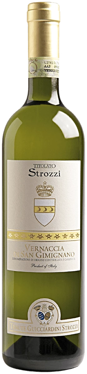 Die Aromatik dieses Weißweins aus der Toskana wird bestimmt von Anklängen nach allerlei roten und schwarzen Beeren und dunklen Früchten wie Schwarzkirschen und Zwetschken. Am Gaumen eröffnet der Titolato Strozzi Vernaccia di San Gimignano von Strozzi wunderbar trocken, griffig und aromatisch. Es gibt trocken und richtig trocken. Dieser Weißwein gehört zur zweiten Gruppe, denn er wurde mit nur 0,6 g Restzucker auf die Flasche gebracht. Das Finale dieses jugendlichen Weißwein aus der Weinbauregion die Toskana besticht schließlich mit schönem Nachhall. Nach der Lese gelangen die Trauben umgehend in die Kellerei. Hier werden sie selektiert und behutsam aufgebrochen. Anschließend erfolgt die Gärung im Edelstahltank bei kontrollierten Temperaturen. Nach ihrem Ende kann sich der Titolato Strozzi Vernaccia di San Gimignano für einige Monate auf der Feinhefe weiter harmonisieren..